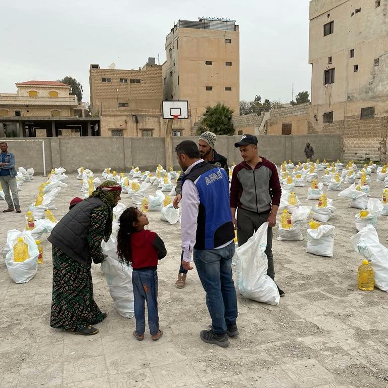 Dayanışma Zamanıyazan ugderaçık Yayımlanma tarihi 22 Eylül 202422 Eylül 2024 Ramazan ayında Derneğimizin Herdem Derneği ve Sosyal Uyum ve Girişimcilik Derneği ile koordineli şekilde yürütmüş olduğu çalışmalar neticesinde Suriye’nin Resulayn bölgesi için topladığımız Ramazan kolilerini ihtiyaç sahibi ailelere ulaştırdık.
