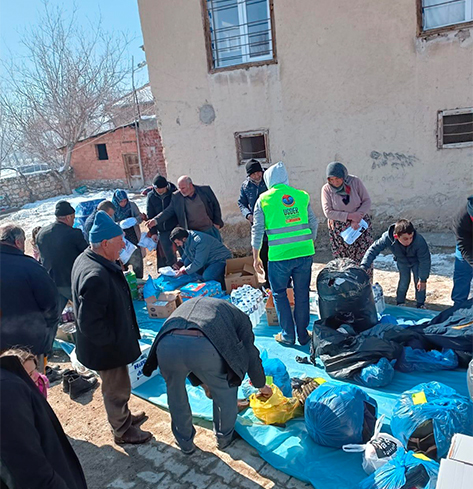 Kahramanmaraş merkezli ve çevre illerde etkili olan ve asrın felaketi olarak nitelendirilen depremden etkilenen vatandaşlarımız için yürütülen yardım kampanyası sonunda toplanan ayni ve nakdi yardımlarımızı 12 Şubat 2023 tarihinde ihtiyaç sahiplerine ulaştırdık. Kuru gıda, iç giyim, kışlık giyim, çocuk bezi vb. içerikli malzemelerin dağıtımını bizzat Kahramanmaraş’ın Afşin ilçesinde depremden etkilenen köylere giderek teslim ettik. Yardım kampanyamızda temin edilen ihtiyaç malzemeleri AFAD tarafından hazırlanan ihtiyaç listesi doğrultusunda hazırlanmış olup ayni yardım usulüne göre dağıtımı yapılmıştır.